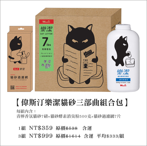 宅配超級好用的偉斯汀貓砂三部曲!貓砂+酵素除臭粉+貓砂過濾網片一應俱全,讓你清貓砂不費力,省時更省錢!